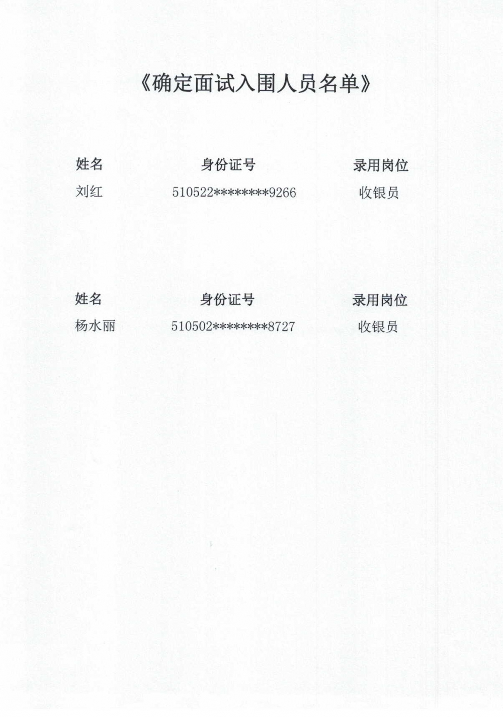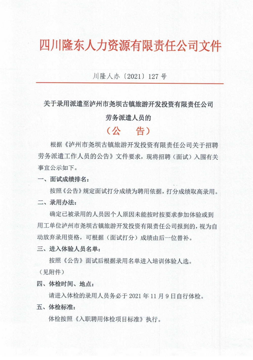 關(guān)于錄用派遣至瀘州市堯壩古鎮(zhèn)旅游開發(fā)投資有限責(zé)任公司 勞務(wù)派遣人員的公告