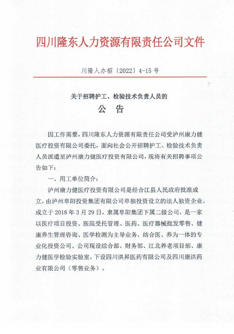 關(guān)于招聘護(hù)工、檢驗技術(shù)負(fù)責(zé)人員的公告