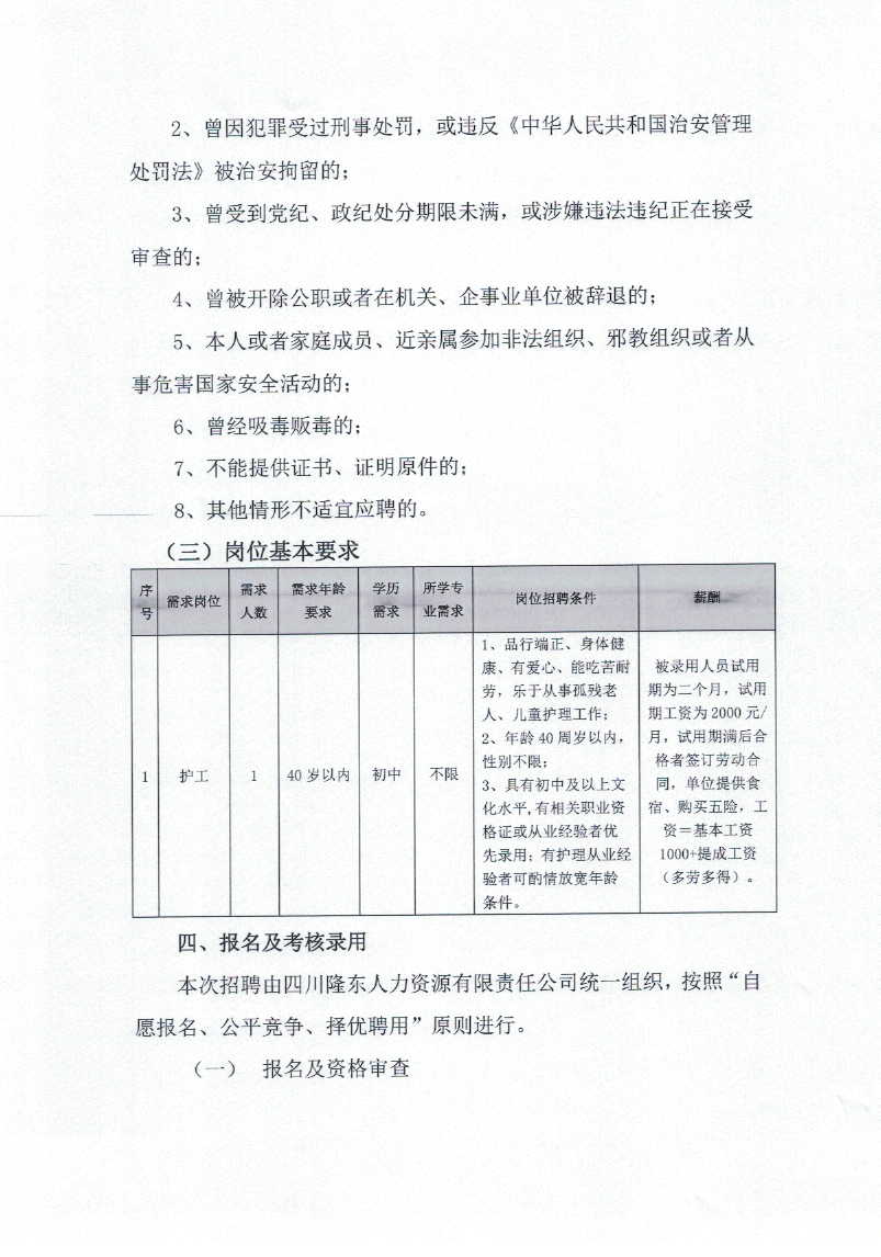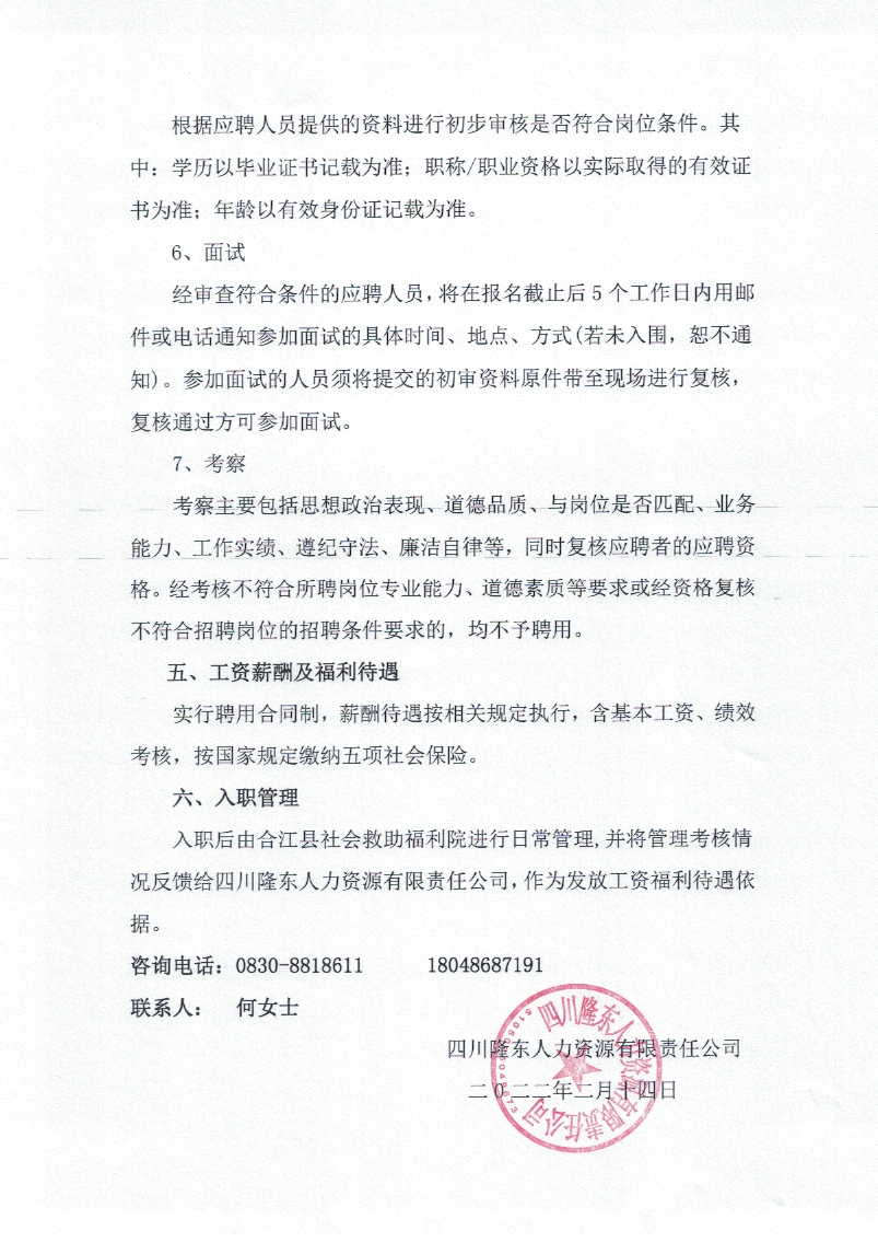 關(guān)于招聘派遣至合江縣社會救助福利院勞務(wù)工作人員的公告