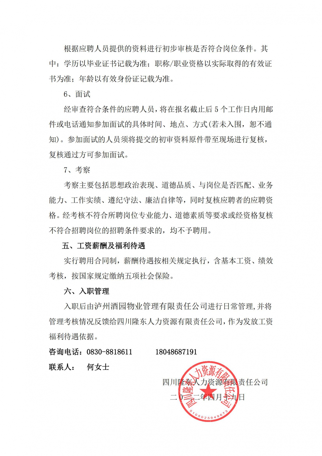 瀘州酒園物業(yè)有限責(zé)任公司招聘公告