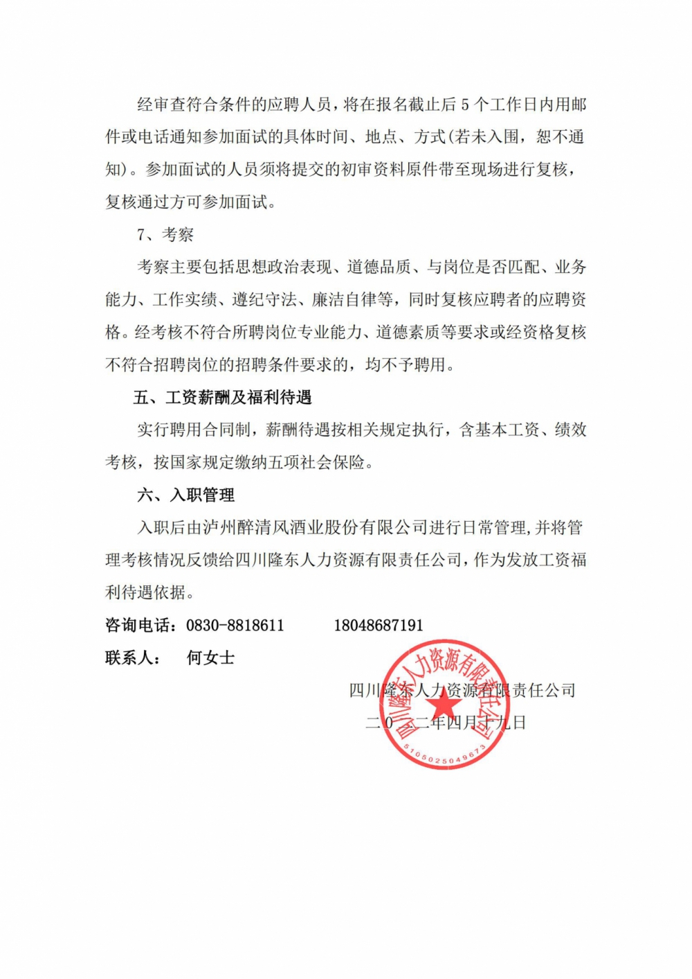 醉清風(fēng)酒業(yè)股份有限公司招聘公告