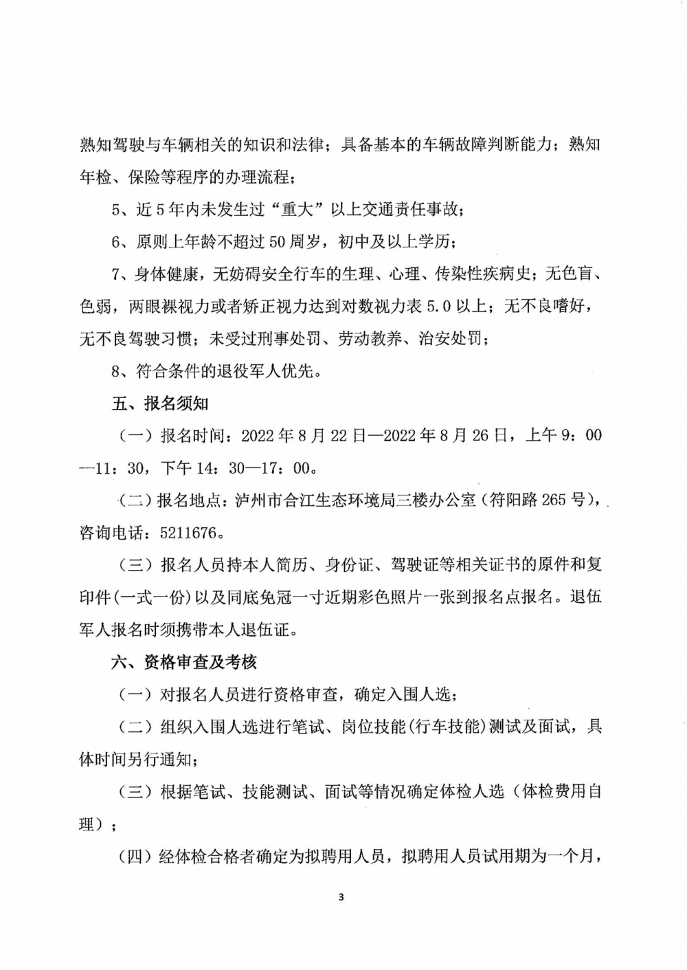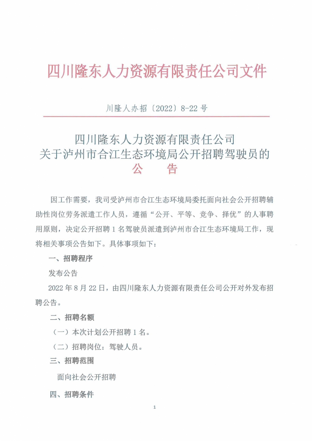 四川隆東人力資源有限責(zé)任公司 關(guān)于瀘州市合江生態(tài)環(huán)境局公開招聘駕駛員的公告