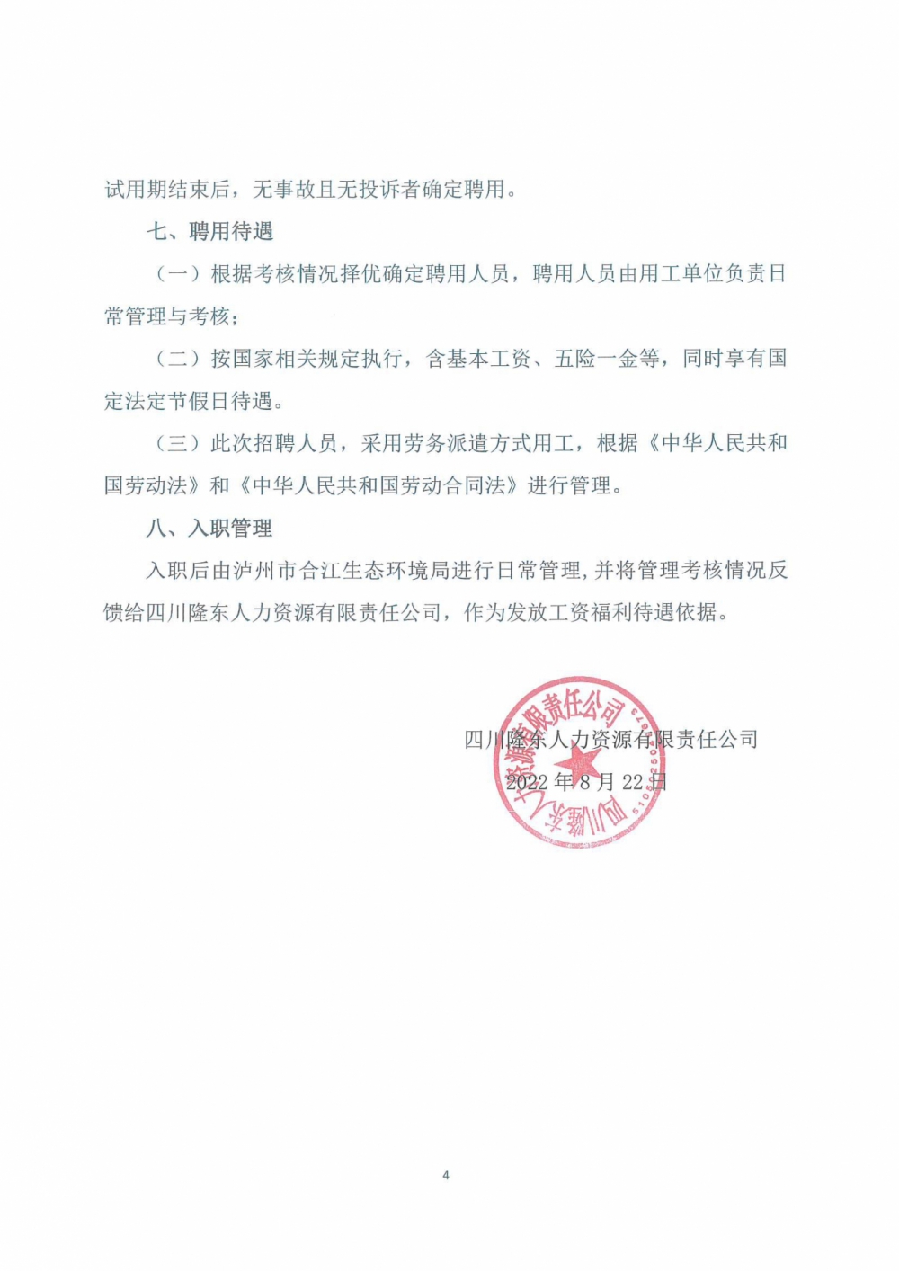 關(guān)于錄用派遣至瀘州白酒產(chǎn)業(yè)園區(qū)綜合服務(wù)器中心勞務(wù)工作人員的公...