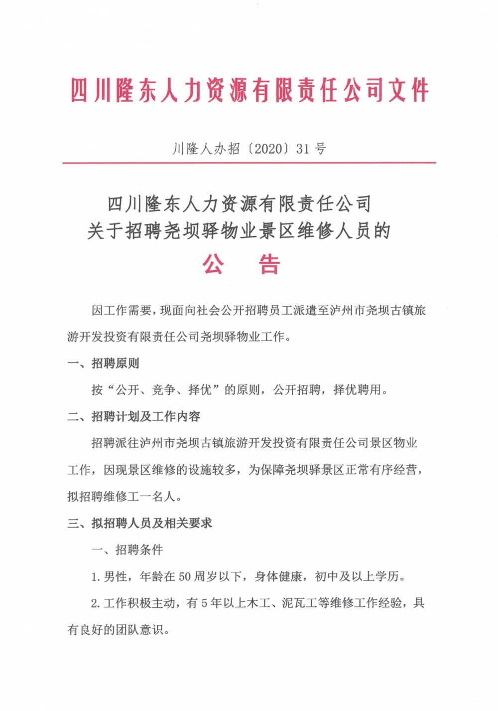 關(guān)于錄用派遣至瀘州白酒產(chǎn)業(yè)園區(qū)綜合服務(wù)器中心勞務(wù)工作人員的公...