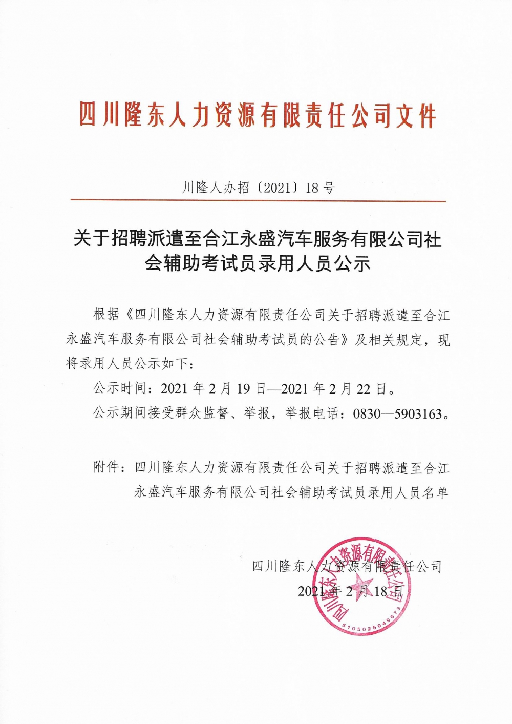關于錄用派遣至瀘州白酒產業(yè)園區(qū)綜合服務中心勞務工作人員的公示