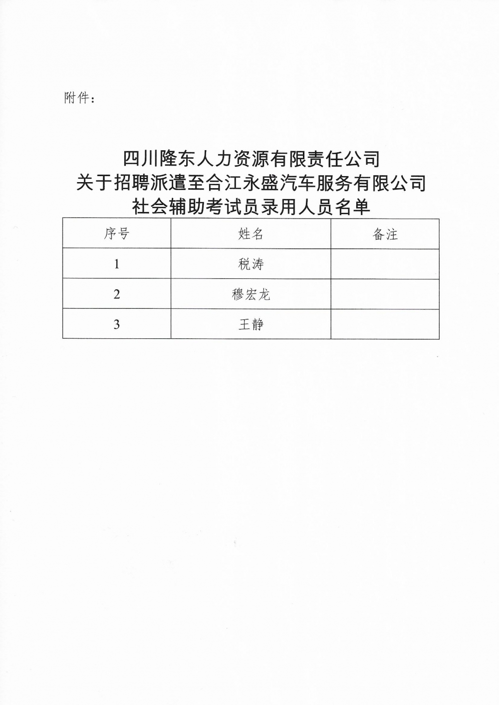 關于錄用派遣至合江縣人民法院勞務工作人員的公示