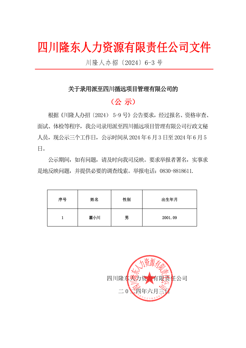 關(guān)于招聘派遣至瀘州白酒產(chǎn)業(yè)園區(qū)綜合服務(wù)中心勞務(wù)工作人員的公 告因工作需要,四川隆東人力資源有限責(zé)任公司受瀘州白酒產(chǎn)業(yè)園區(qū)綜合服務(wù)中心委托,面向社會公開招聘勞務(wù)派遣工作人員,現(xiàn)將有關(guān)招聘事項公告如下:一、公告發(fā)布2024年08月02日,由四川隆東人力資源有限責(zé)任公司公開對外發(fā)布招聘公告。二、招聘范圍面...